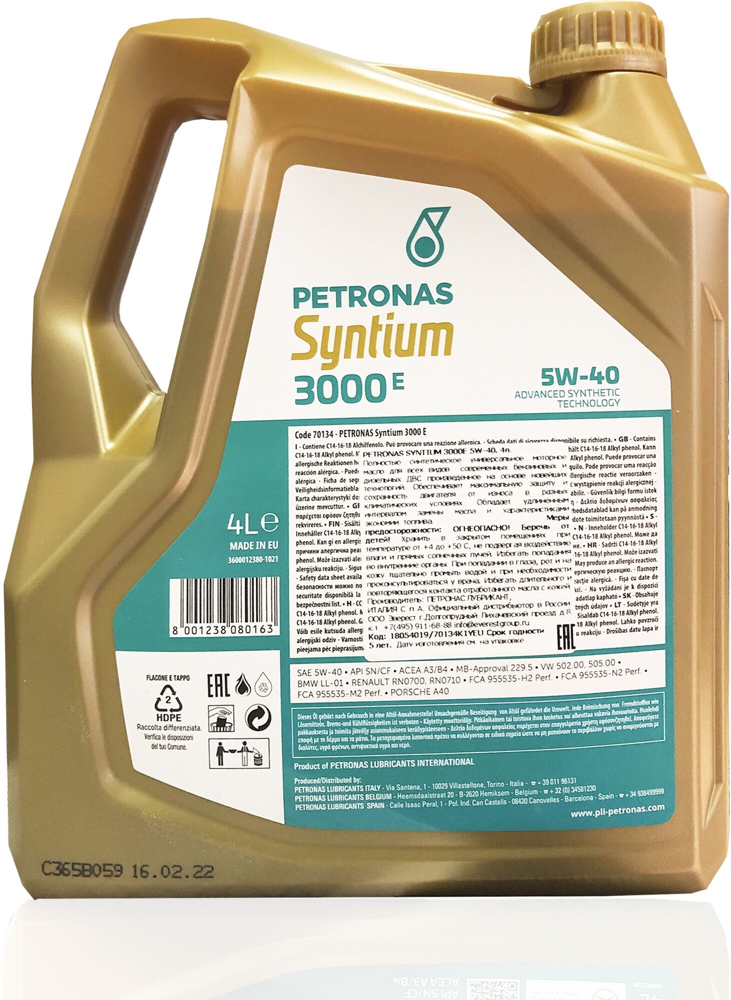 SAE viscosity grade: 5W-40, oil type: synthetic, vehicle type: passenger cars, fuel type: gasoline, diesel, API standard: CF, SN, ACEA standard: A3/B4, A3, B4, OEM approvals: BMW Longlife- 01, GM-LL-B-025, MB 229.5, PORSCHE A40, Renault RN 0700, Renault R