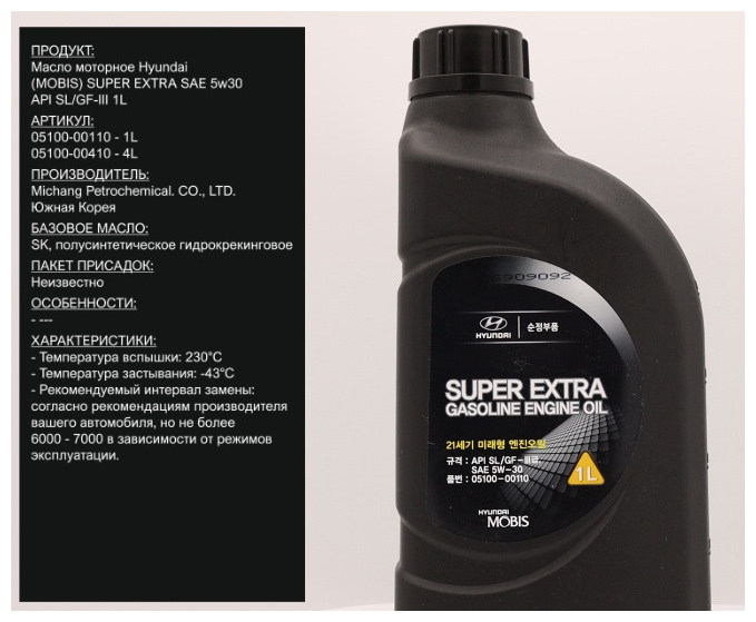 Semi-synthetic Super Extra Gasoline 5W-30, 1L HYUNDAI/KIA