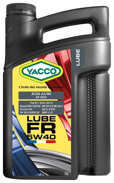 SAE viscosity grade: 5W-40, oil type: synthetic, vehicle type: passenger cars, fuel type: gasoline, diesel, API standard: CF, SN, ACEA standard: A3/B4, A3, B4, OEM approvals: BMW Longlife- 01, GM-LL-B-025, PORSCHE A40, PSA B71 2296, Renault 0700/0710, VW