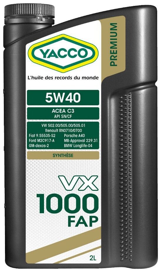OEM Approvals: BMW Longlife-04, FIAT 9.55535-S2, Ford WSS-M2C 917-A, MB 226.5, MB 229.31, PORSCHE A40, Renault RN 0700/RN0710, VW 502.00/505. 00/505.01, dexos 2