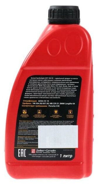 SAE viscosity grade: 5W-30, oil type: synthetic, vehicle type: passenger cars, fuel type: gasoline, engine type: four-stroke