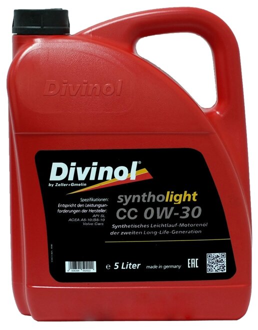 SAE viscosity grade: 0W-30, oil type: synthetic, vehicle type: passenger cars, API standard: SL, engine type: four-stroke