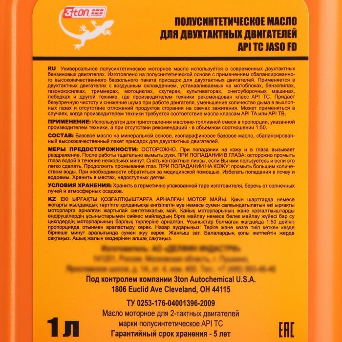 SAE viscosity grade: Not subject to SAE classification, oil type: semi-synthetic, vehicle type: motorcycle, fuel type: gasoline, API standard: TC, engine type: two-stroke