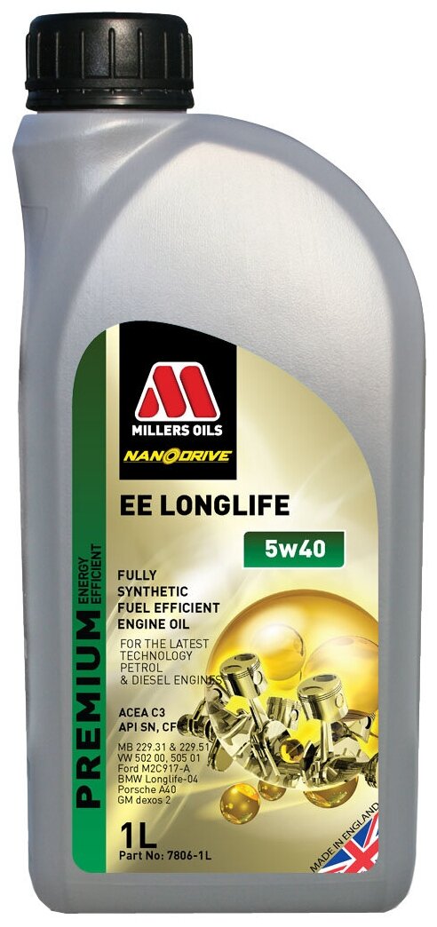 SAE viscosity grade: 5W-40, oil type: synthetic, API standard: SN, ACEA standard: C3, engine type: four-stroke