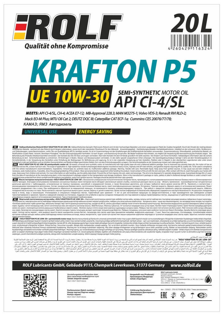 ROLF KRAFTON P5 U 10W-30 Semi-synthetic 20 l