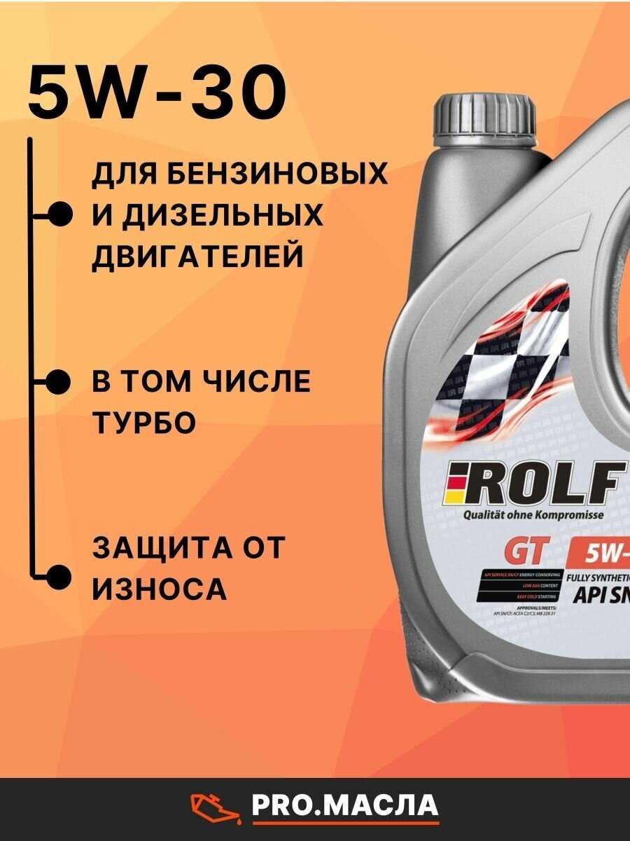 Description: SAE viscosity grade: 5W-30, oil type: synthetic, vehicle type: passenger cars, fuel type: gasoline, diesel, methane, API standard: CF, SL, SN, SN/CF, ACEA standard: A3/B4, A3/ B3, C2, C3, C2/C3, OEM approvals: BMW Longlife-04, GM Dexos 2, MB 229.31, MB 22