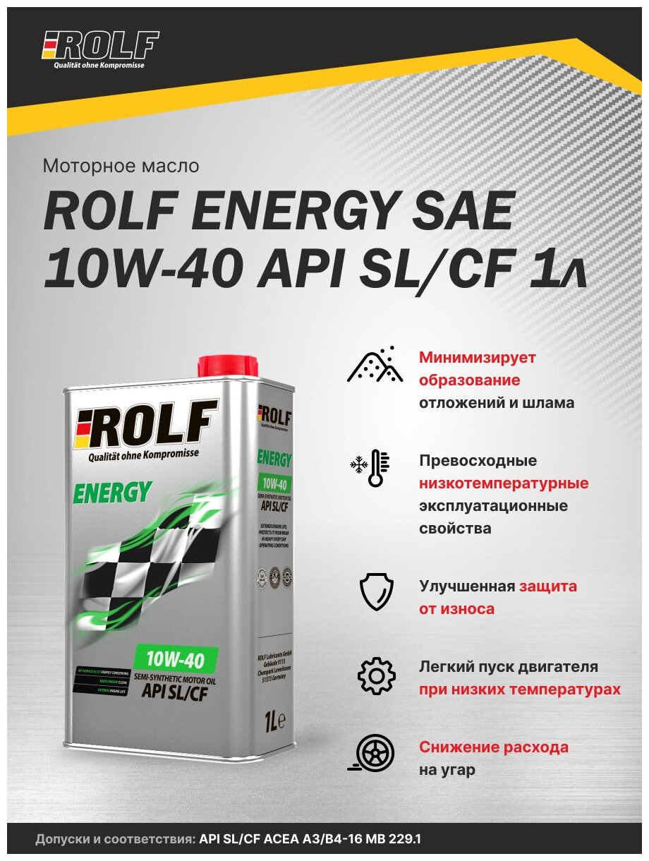 SAE viscosity grade: 10W-40, oil type: semi-synthetic, synthetic, vehicle type: passenger cars, fuel type: gasoline, diesel, methane, propane, Gas, Hybrid, Electric, API standard: CF, SL, SL/CF, Standard ACEA: A3/B4, A3/B3, A3, B3, B4, D