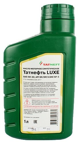 SAE viscosity grade: 0W-30, oil type: synthetic, API standard: SN, engine type: four-stroke