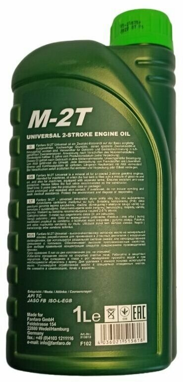 OEM Approvals: FANFARO M-2T, ISO-L-EGB, JASO FB, JASO FBISO-L-EGB