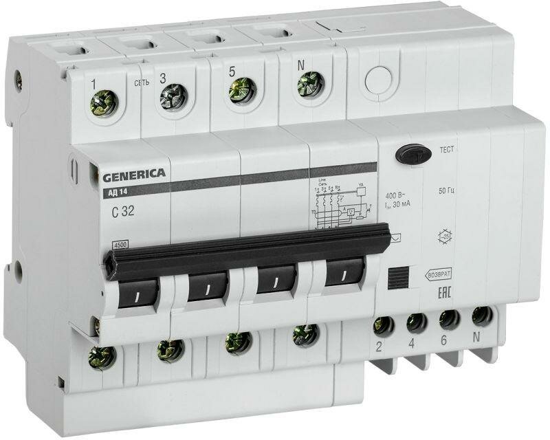 Automatic differential current 4p 32A 30mA AD14 GENERICA IEC MAD15-4-032-C-030