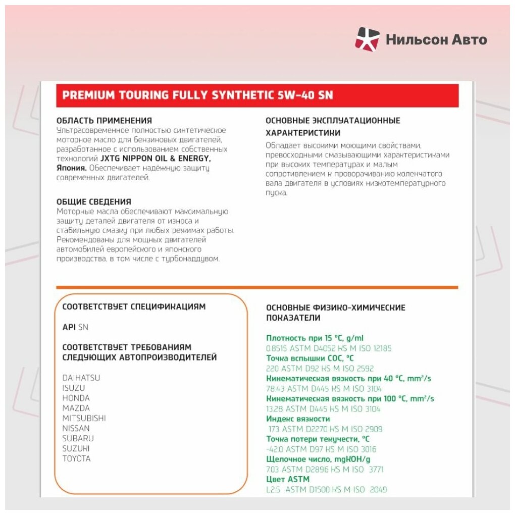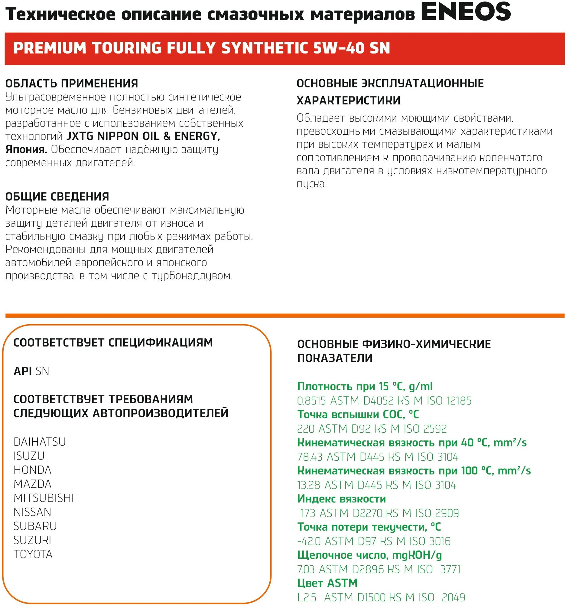 SAE viscosity grade: 5W-40, oil type: synthetic, Synthetic all-season, vehicle type: passenger cars, fuel type: gasoline, diesel, Gas, API standard: SN, ACEA standard: A5/B5, OEM approvals: Honda, Mazda, AVTOVAZ LADA cars, ILSAC GF-5, Mitsubishi