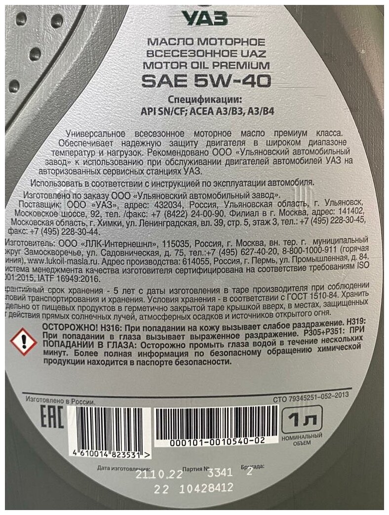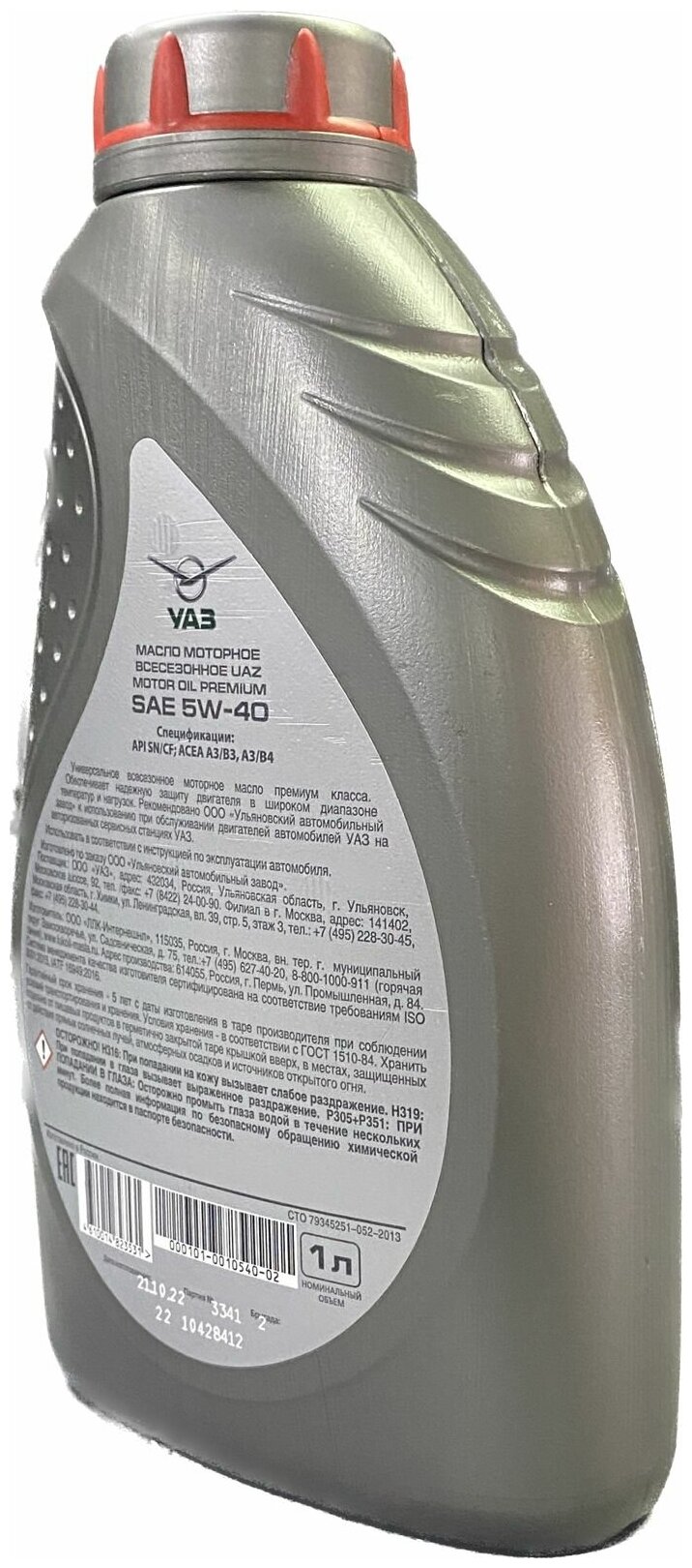 SAE viscosity grade: 5W-40, oil type: synthetic, API standard: CF, SN, ACEA standard: A3/B4, engine type: four-stroke