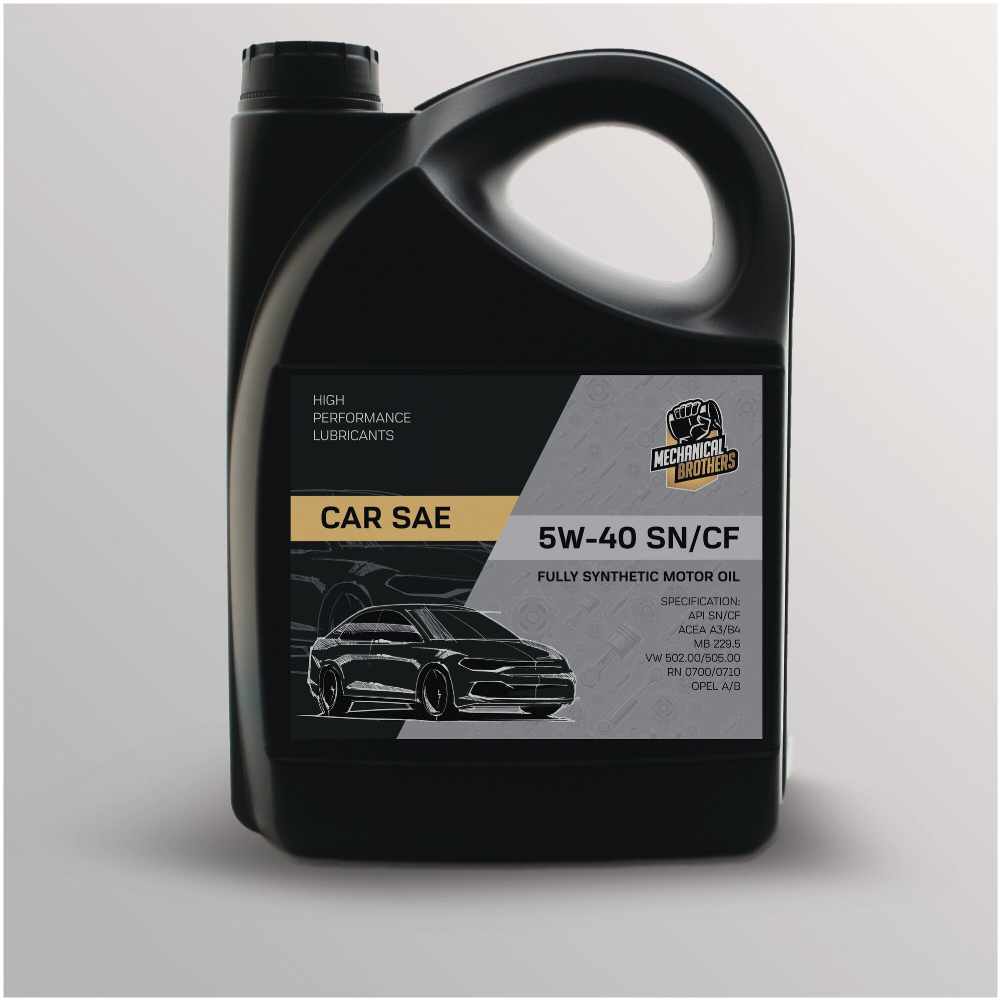 SAE viscosity grade: 5W-40, oil type: synthetic, vehicle type: passenger cars, light trucks, fuel type: gasoline, diesel, API standard: CF, SN, ACEA standard: A3/B4, OEM approvals: MB 229.5, OPEL A/B, Renault RN 0700, Renault RN 0710, VW 50
