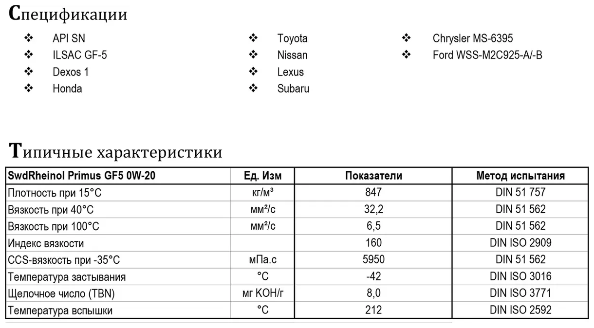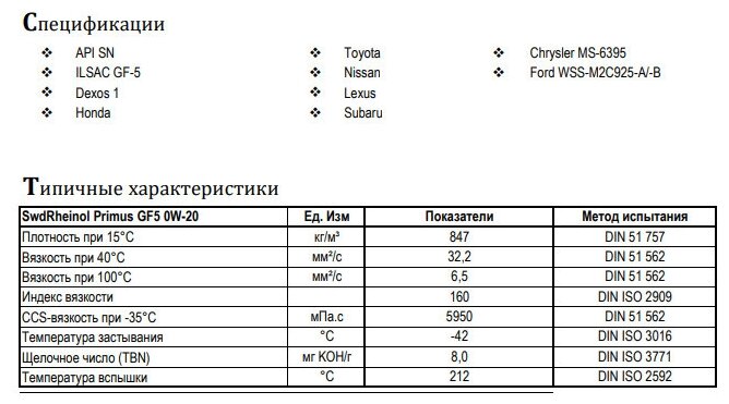 SAE viscosity grade: 0W-20, oil type: synthetic, vehicle type: passenger cars, fuel type: gasoline, API standard: SN, engine type: four-stroke, for turbocharged engines