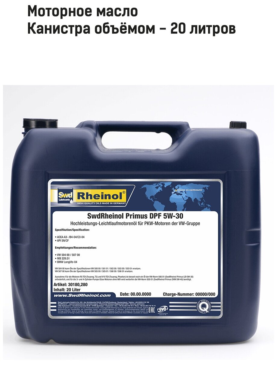 Swd Rheinol Primus DPF 5W-30 20l. High performance, low ash. Germany.