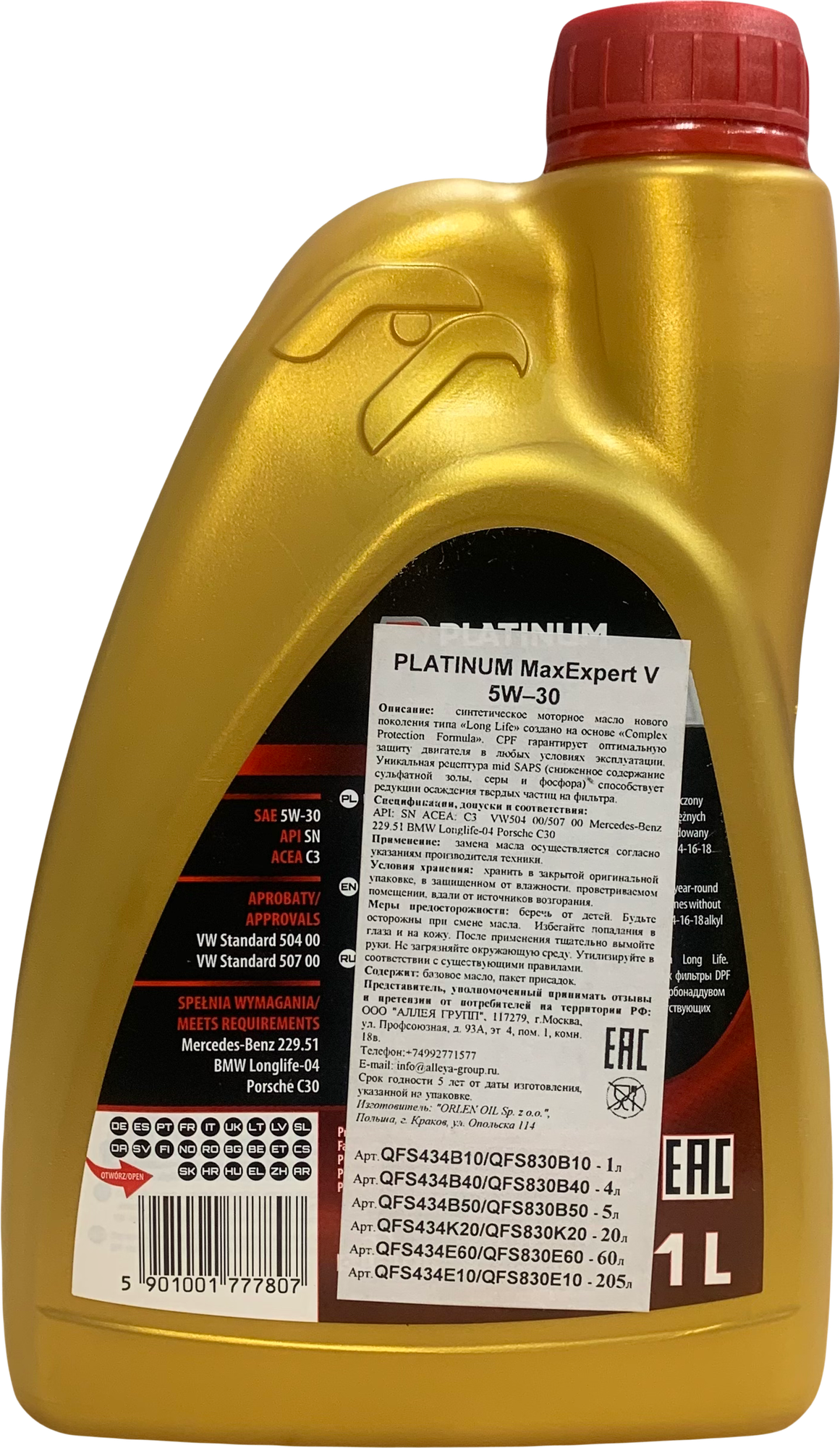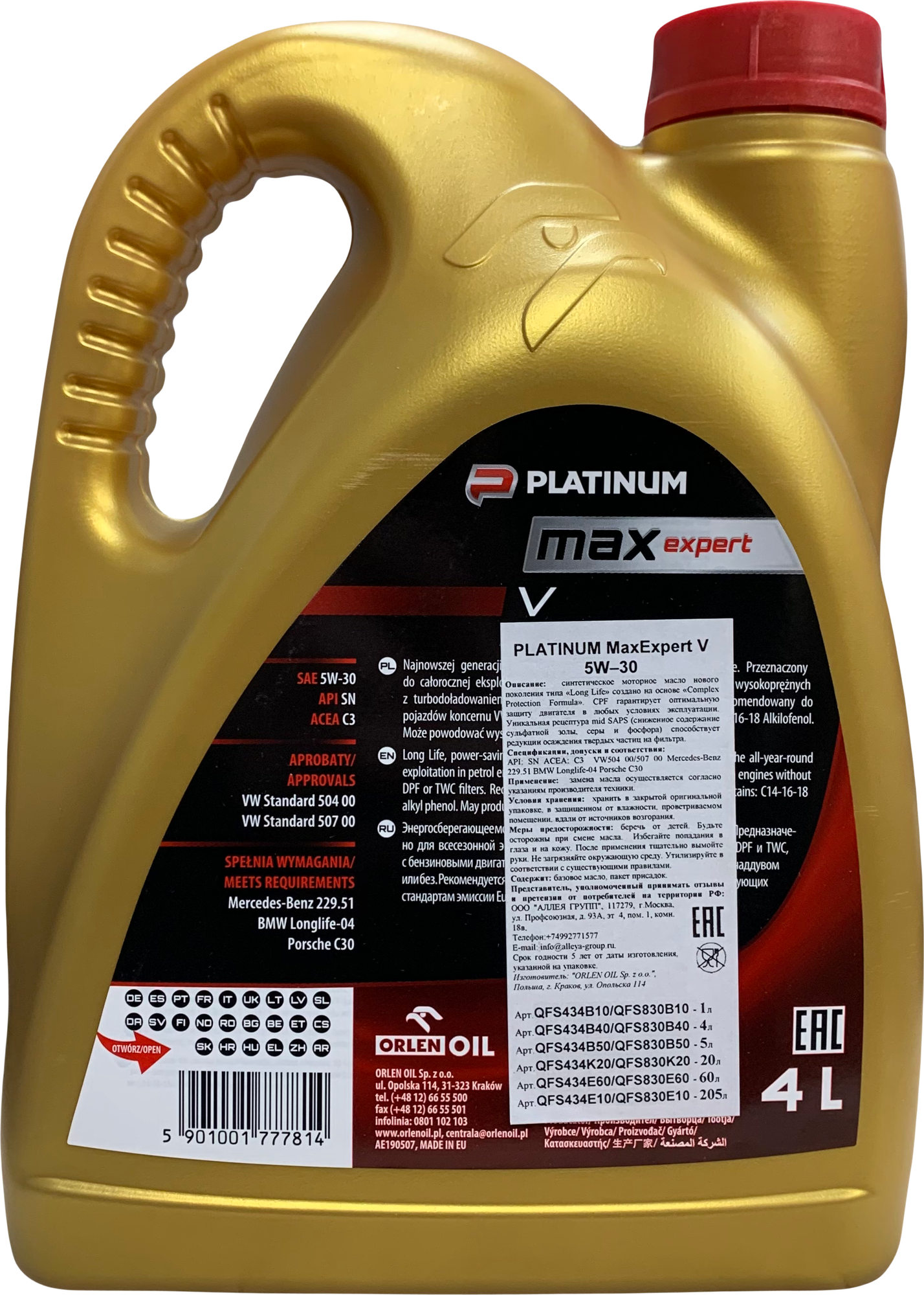 Synthetic Orlen Oil PLATINUM MaxExpert V 5W–30 20 l