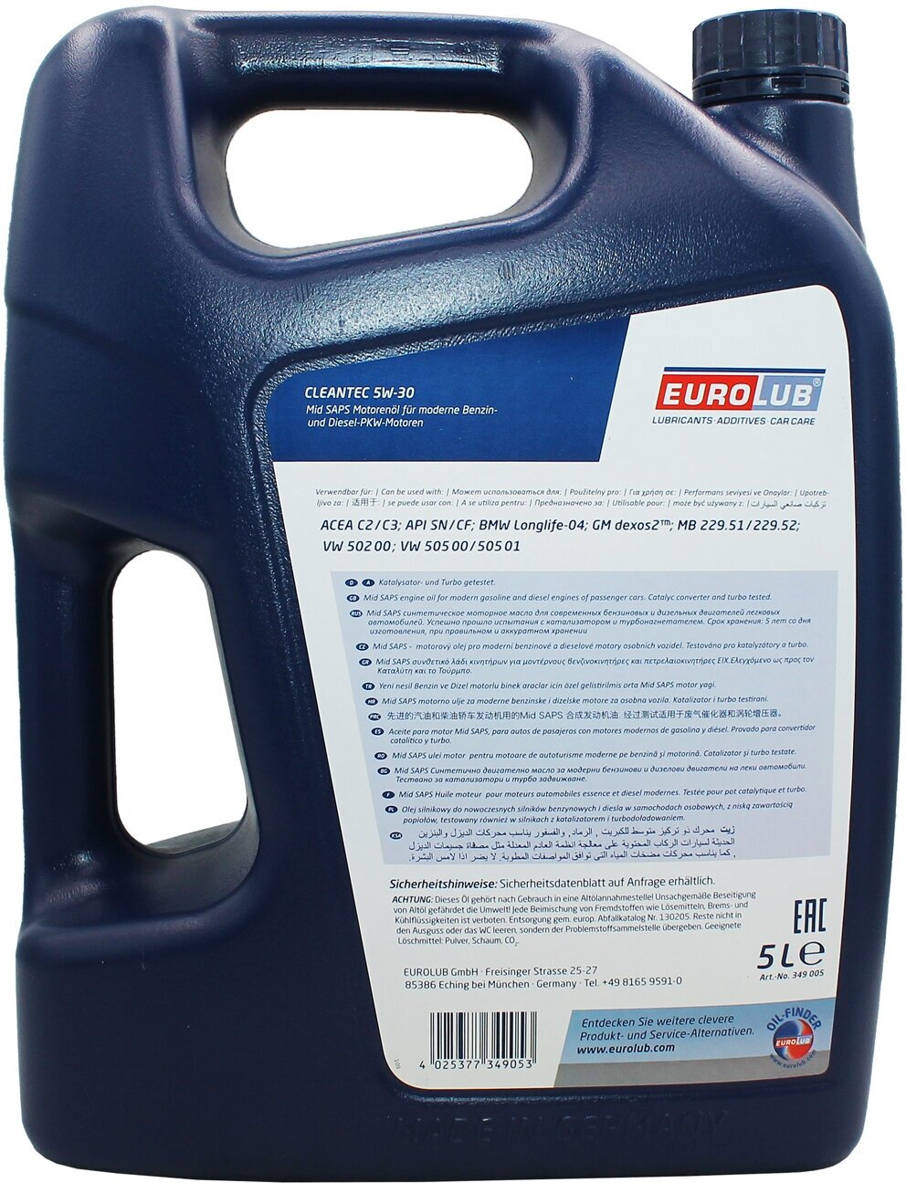 SAE viscosity grade: 5W-30, oil type: synthetic, fuel type: gasoline, diesel, API standard: CF, SN, ACEA standard: C2, C3, OEM approvals: BMW Longlife-04, GM Dexos 2, MB 229.51, MB 229.52, Renault RN 0700, Renault RN 0710, VW 502.00/505.00, VW 505.00, VW