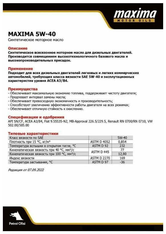 OEM Approvals: BMW LL-01, MB 229.5, 226.5, VW 505.00, Renault RN0710, Fiat 955535.Z2