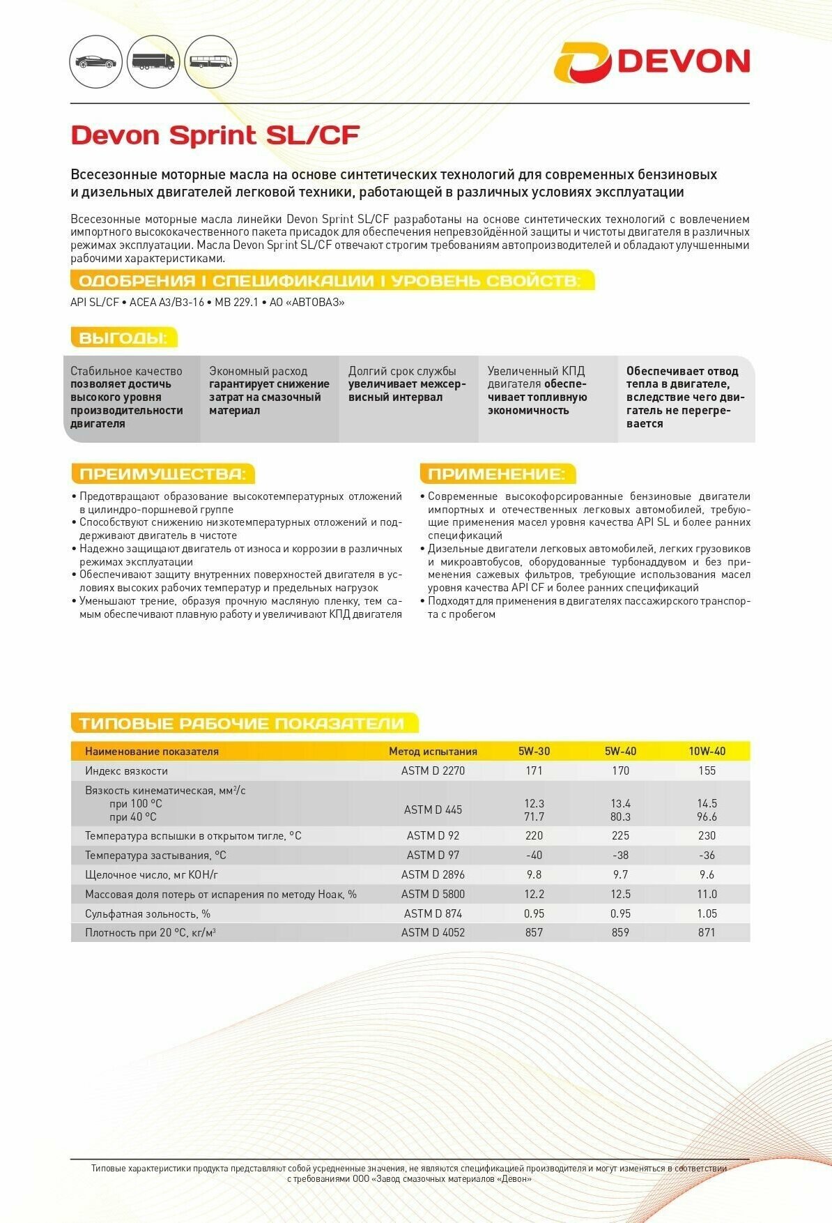 Engine Devon Sprint SAE 10W-40 SL/CF 4 l
