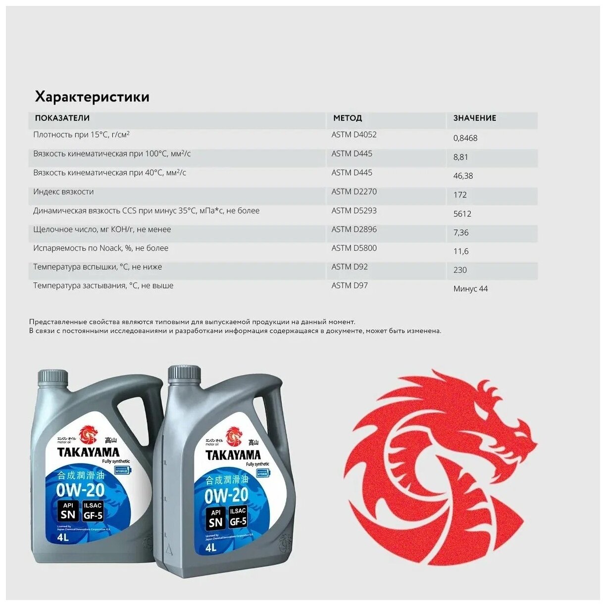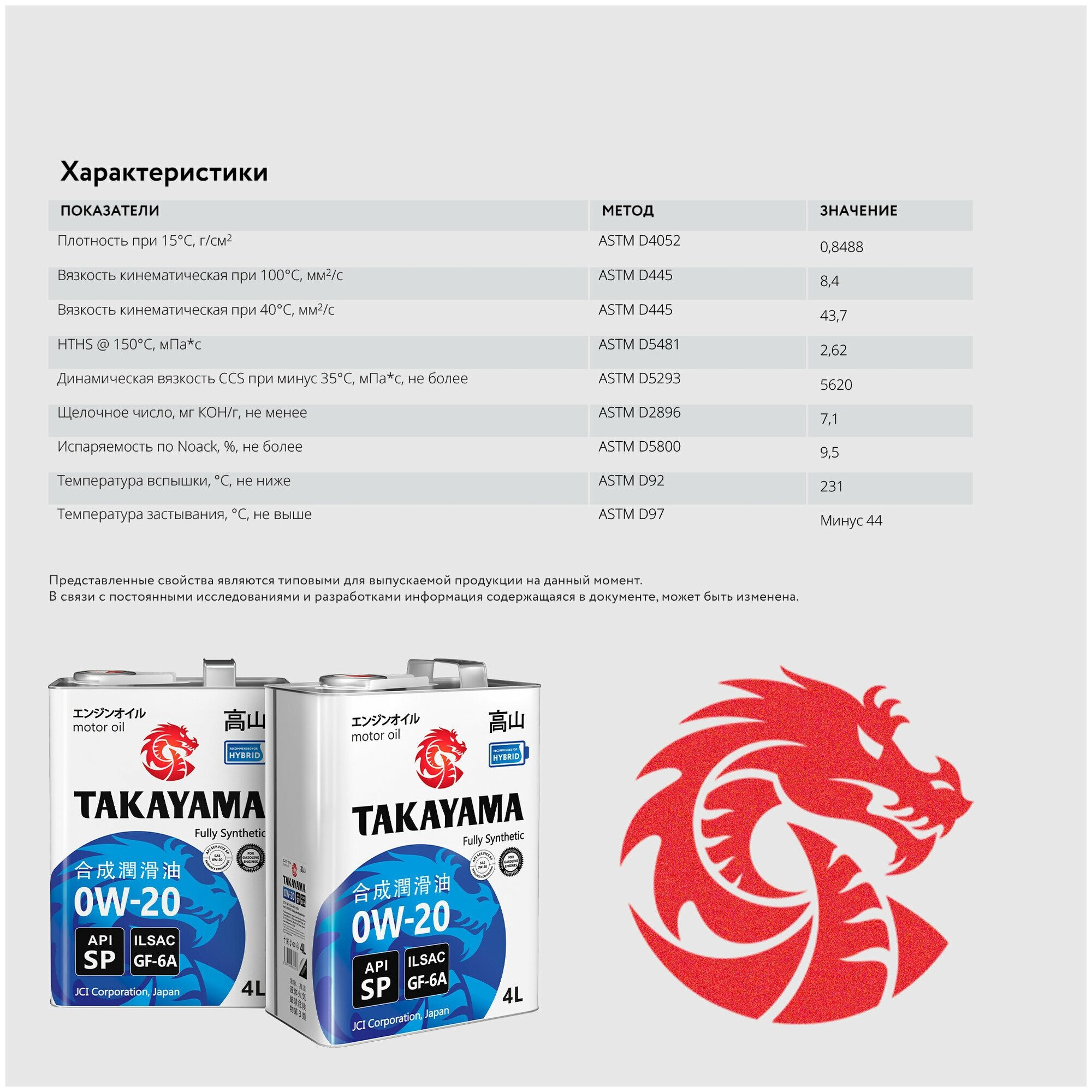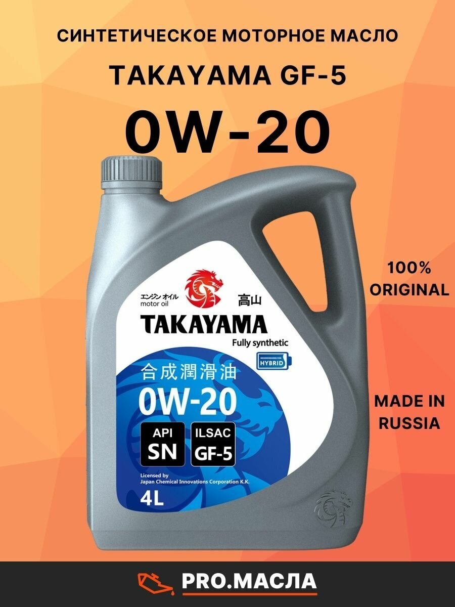 Motor TAKAYAMA SAE 0W-20, ILSAC GF-5, API SN Synthetic 4 l