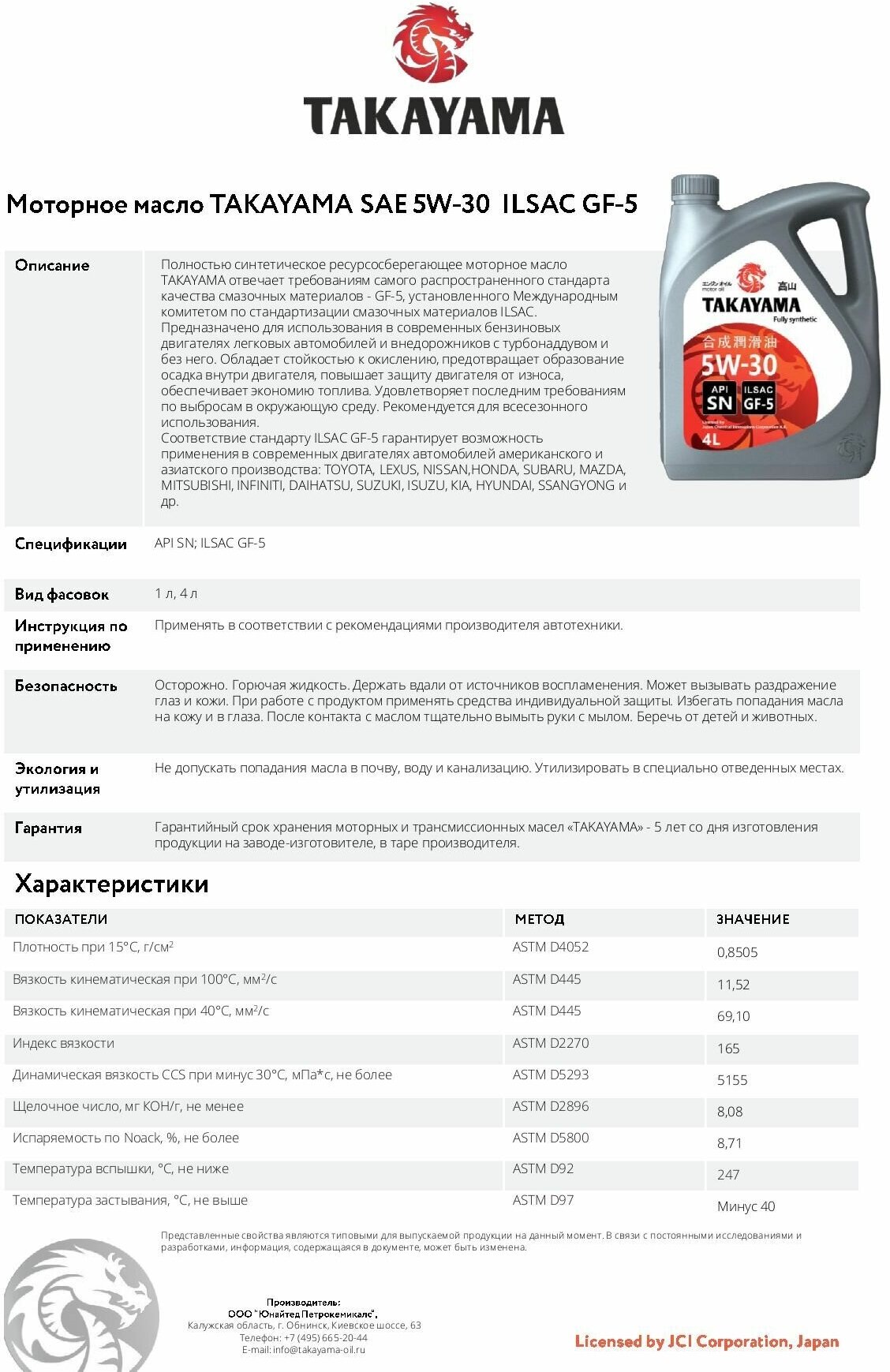 Motor Takayama 5W-30 1l synth. API SN/GF5