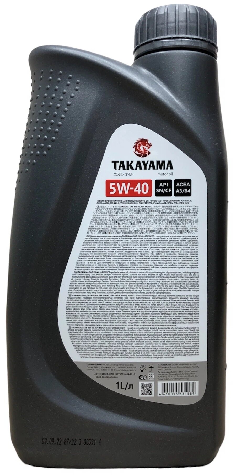 Viscosity grade SAE: 5W-40