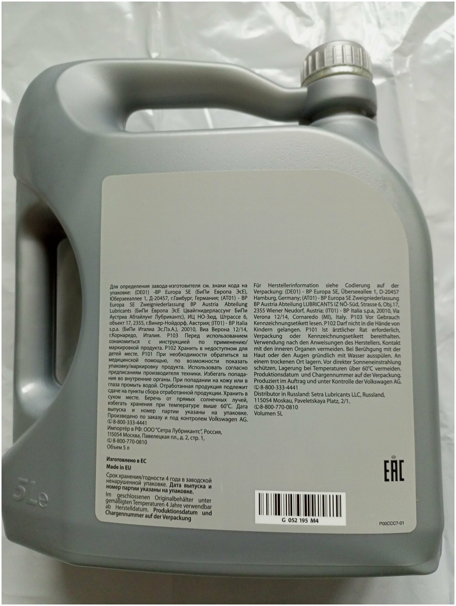 SAE viscosity grade: 5W-30, oil type: synthetic, fuel type: gasoline, diesel, API standard: CF, ACEA standard: C3, OEM approvals: VW 504.00, VW 507.00, engine type: four-stroke