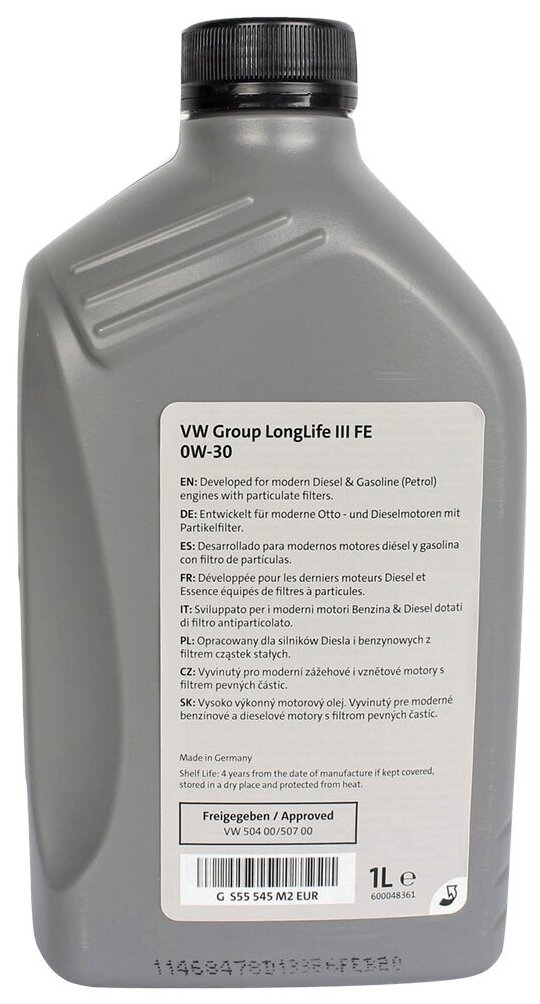 Synthetic Longlife Iii Fe 0w-30, 1l Pro-Vo Europe VAG art. GS55545M2EUR