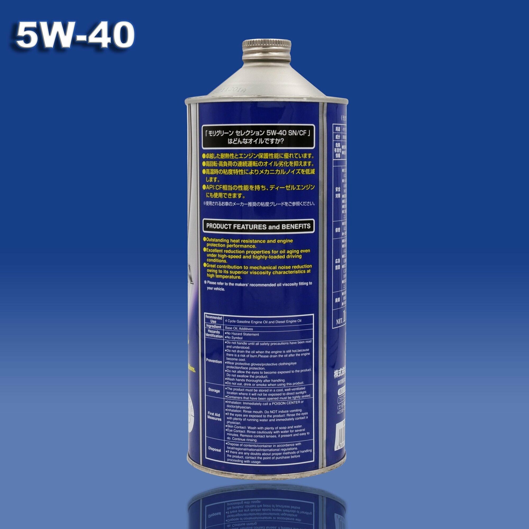 SAE viscosity grade: 5W-40, oil type: synthetic, fuel type: gasoline, diesel, gas, API standard: CF, SN, SN/CF, ACEA standard: SN/CF, OEM approvals: Honda, Mitsubishi, Toyota, type engine: four-stroke, for turbocharged engines