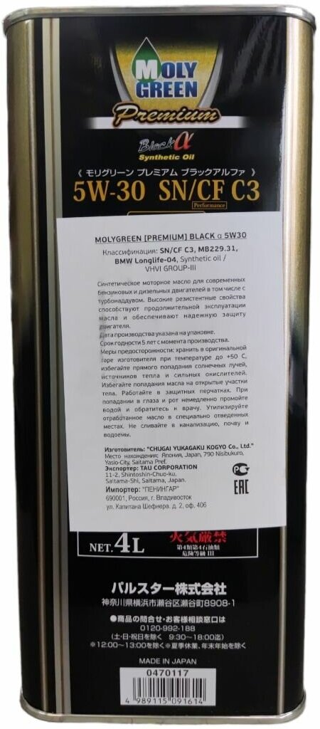 MolyGreen Premium Black α SN/CF C3 5W-30 4 l