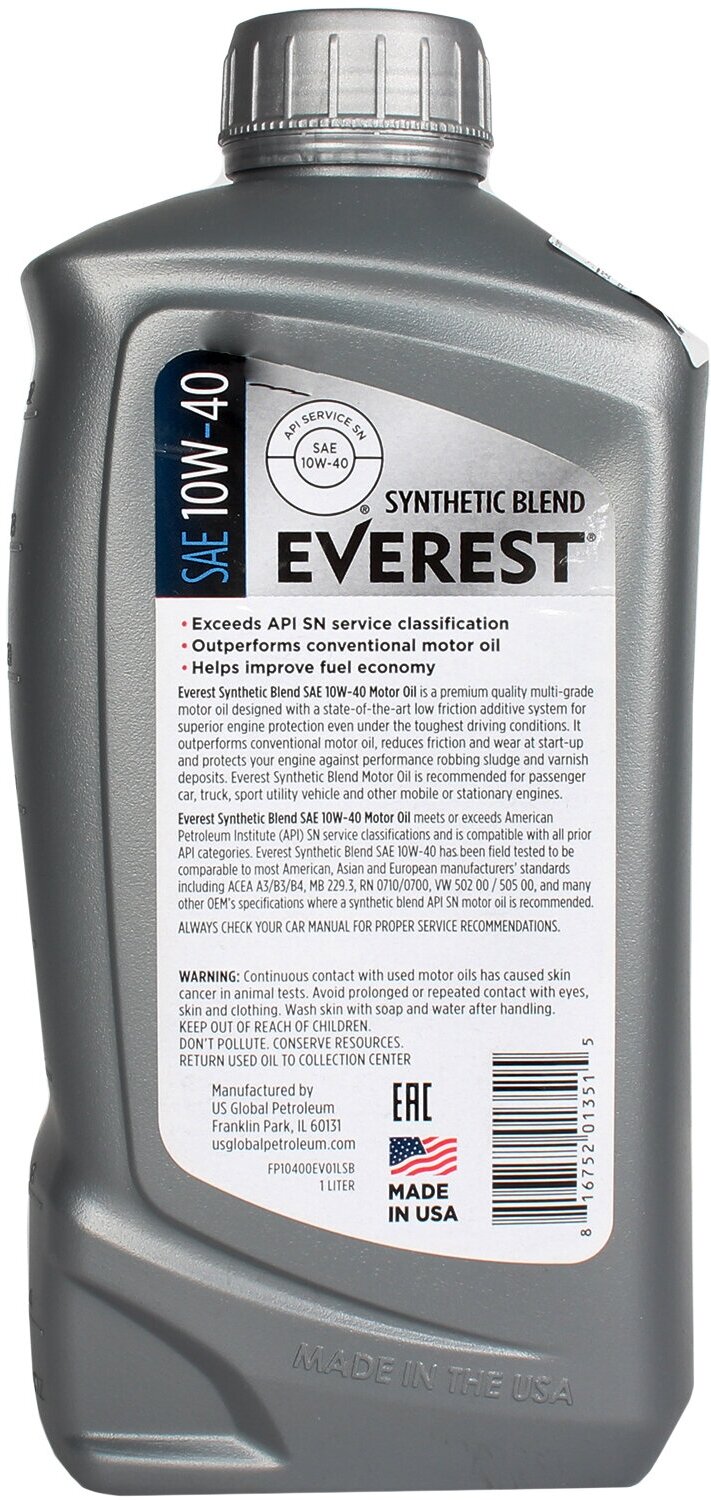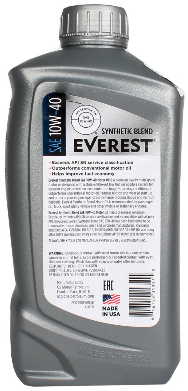 SAE viscosity grade: 10W-40, oil type: semi-synthetic, synthetic, vehicle type: trucks and special equipment, passenger cars, API standard: SJ, SL, SM, SN, engine type: four-stroke
