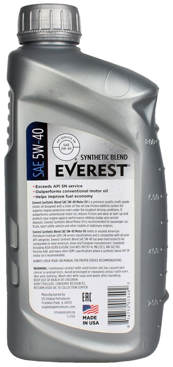 SAE viscosity grade: 5W-40, oil type: synthetic, vehicle type: passenger cars, fuel type: gasoline, diesel, Hybrid, API standard: SJ, SL, SM, SN, SN+, ACEA standard: A3, B3, B4, engine type: four stroke