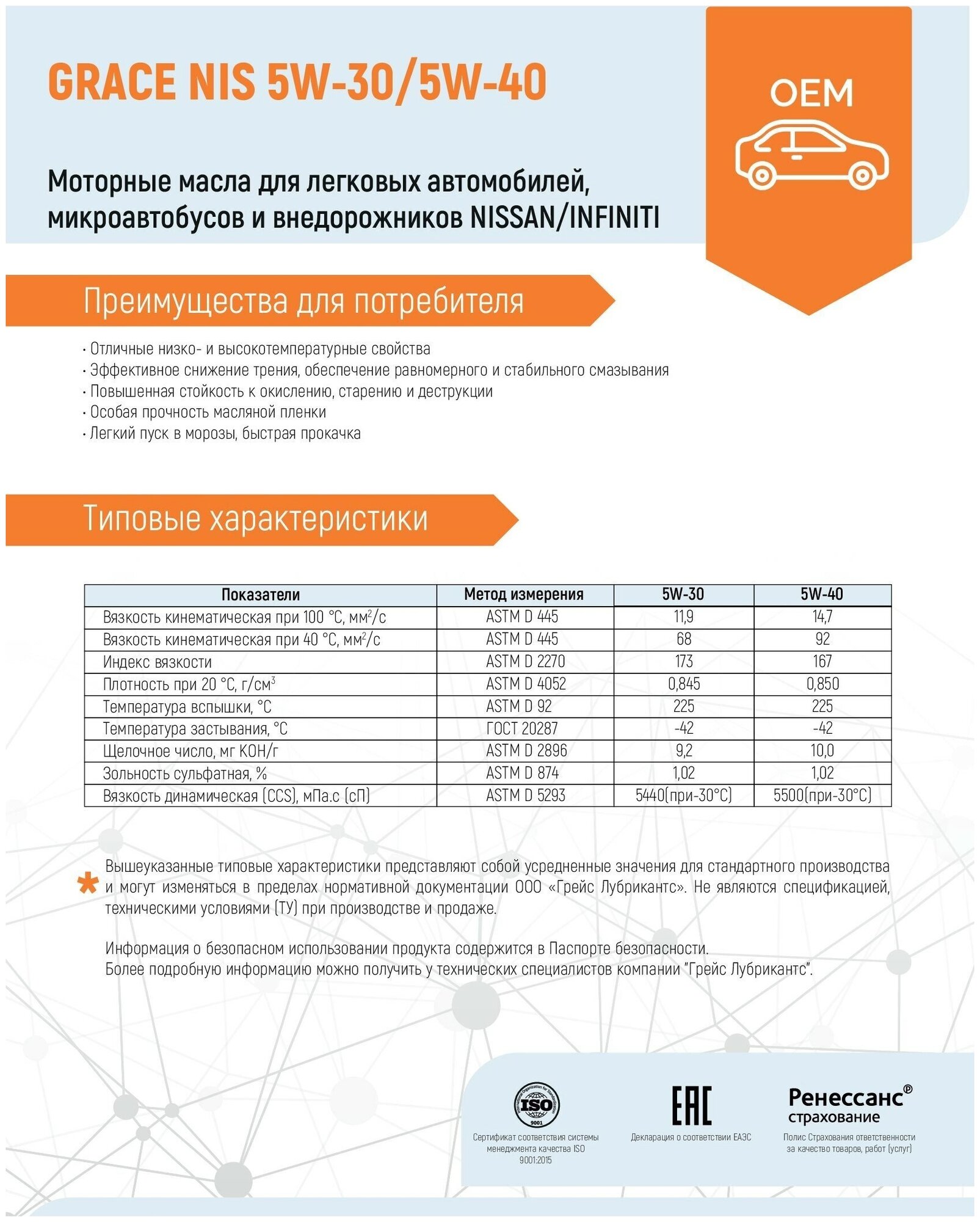 Application: passenger cars, light SUVs, Nissan/Infiniti minibuses