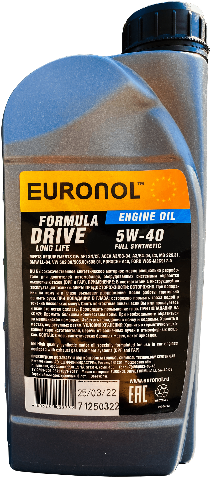 SAE viscosity grade: 5W-40, oil type: synthetic, fuel type: gasoline, diesel, API standard: CF, SN, ACEA standard: A3/B4, A3/B3, OEM approvals: BMW Longlife-01, MB 229.1, PORSCHE A40, Renault RN 0700, VW 502.00, VW 502.00/505.00, VW 505.00