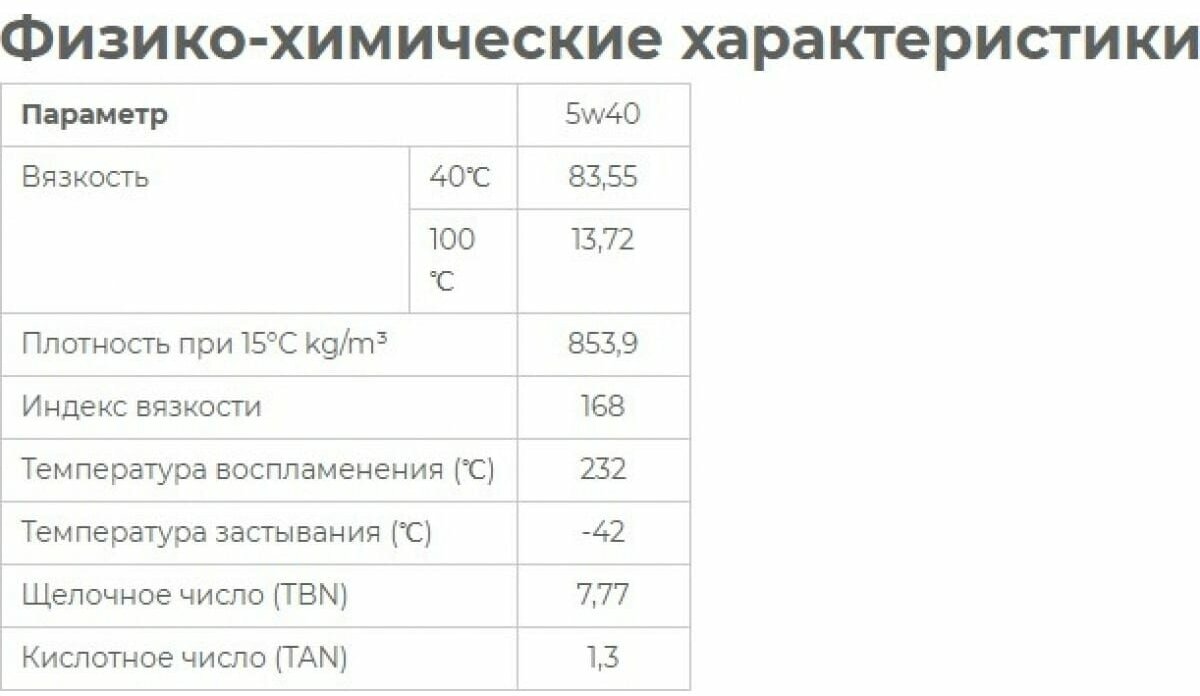SAE viscosity grade: 5W-40, oil type: HC-synthetic, semi-synthetic, synthetic, vehicle type: passenger cars, fuel type: gasoline, methane, API standard: GF-5, SN, SN+, SP, ACEA standard: A3, B3, B4, OEM approvals: No, motor type