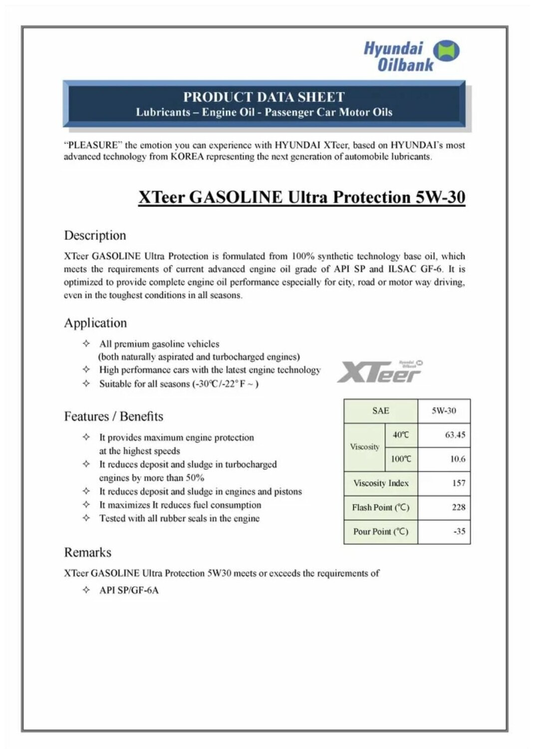 HYUNDAI Xteer Gasoline Ultra Protection 5W30 SN/SP 4L
