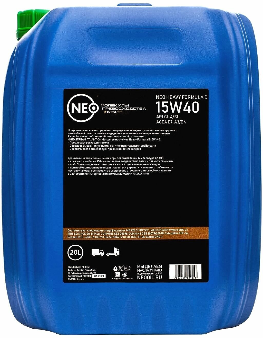 SAE viscosity grade: 15W-40, oil type: mineral, vehicle type: trucks and special equipment, fuel type: diesel, API standard: CI-4, SL, ACEA standard: A3/B4, E7, engine type: four-stroke