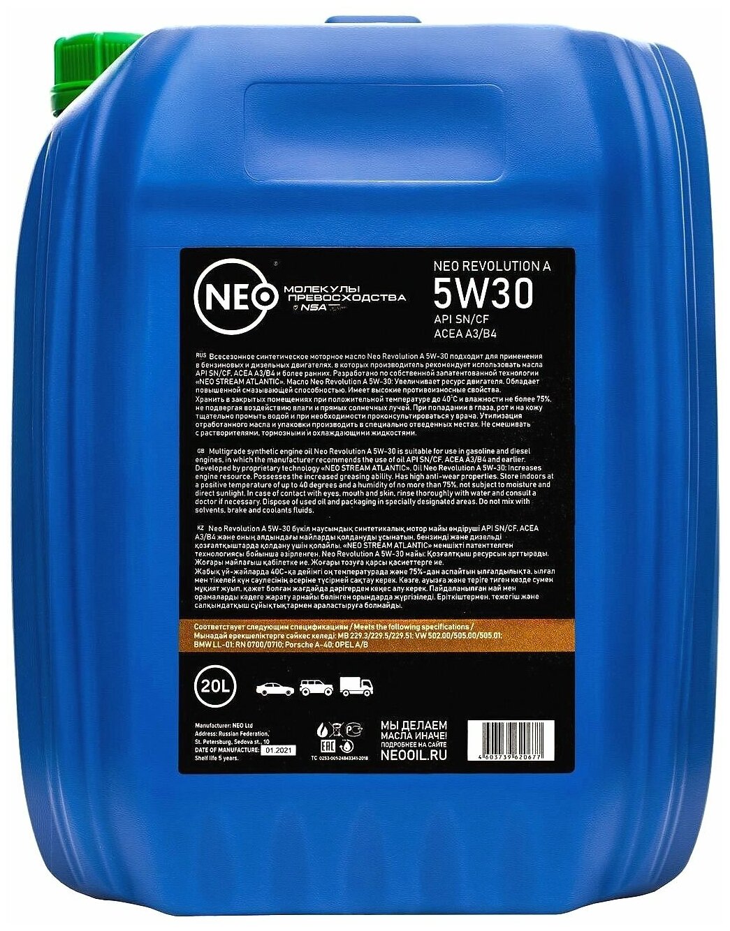 SAE viscosity grade: 5W-30, oil type: synthetic, vehicle type: passenger cars, fuel type: gasoline, diesel, API standard: GF-5, SL, SN, ACEA standard: C3, OEM approvals: FIAT 9.55535-D2, MB 226.5, RN 0700, RN 0710, VW 501 01, VW 505 00, engine type: four�