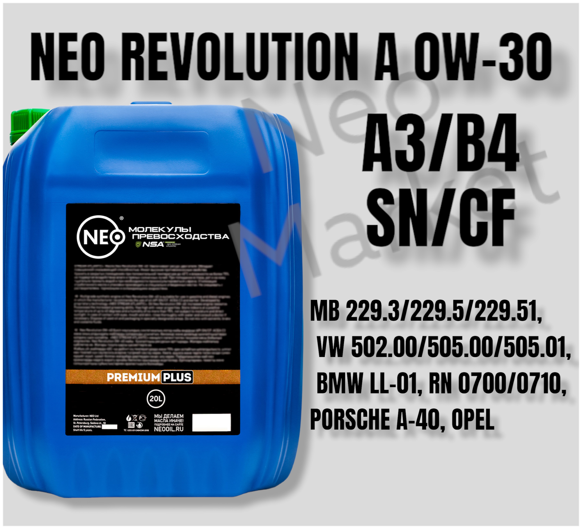 SAE viscosity grade: 0W-30, oil type: synthetic, vehicle type: SUVs; Commercial vehicles; Passenger cars; Special vehicles, fuel type: gasoline, diesel, oil, API standard: CF, SN, ACEA standard: A3/B4, A3 /B4, OEM approvals: