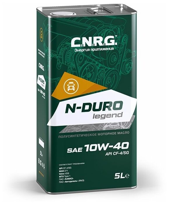 SAE viscosity grade: 10W-40, oil type: semi-synthetic, vehicle type: trucks and special equipment, fuel type: gasoline, diesel, API standard: CF-4, SG, OEM approvals: MAN 271, Volvo VDS, MTU 1, PJSC Avtodiesel YaMZ, PJSC KAMAZ, type dvi