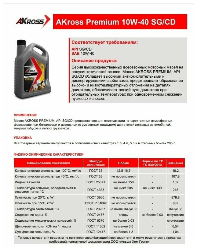 Semi-synthetic AKross Premium 10W-40 SG/CD