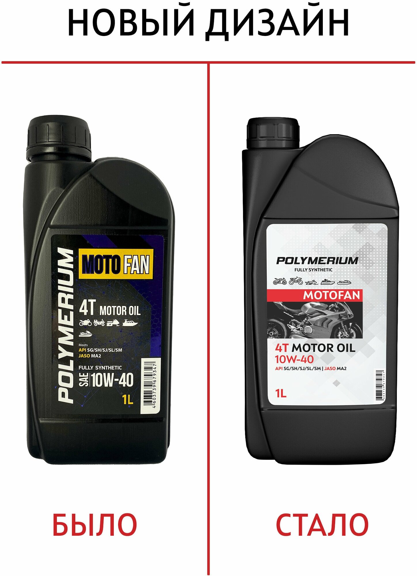 SAE viscosity grade: 10W-40, oil type: synthetic, vehicle type: water transport, tools and garden equipment, motorcycles, snowmobiles, fuel type: gasoline, API standard: SG, SH, SJ, SL, SM, engine type: four-stroke