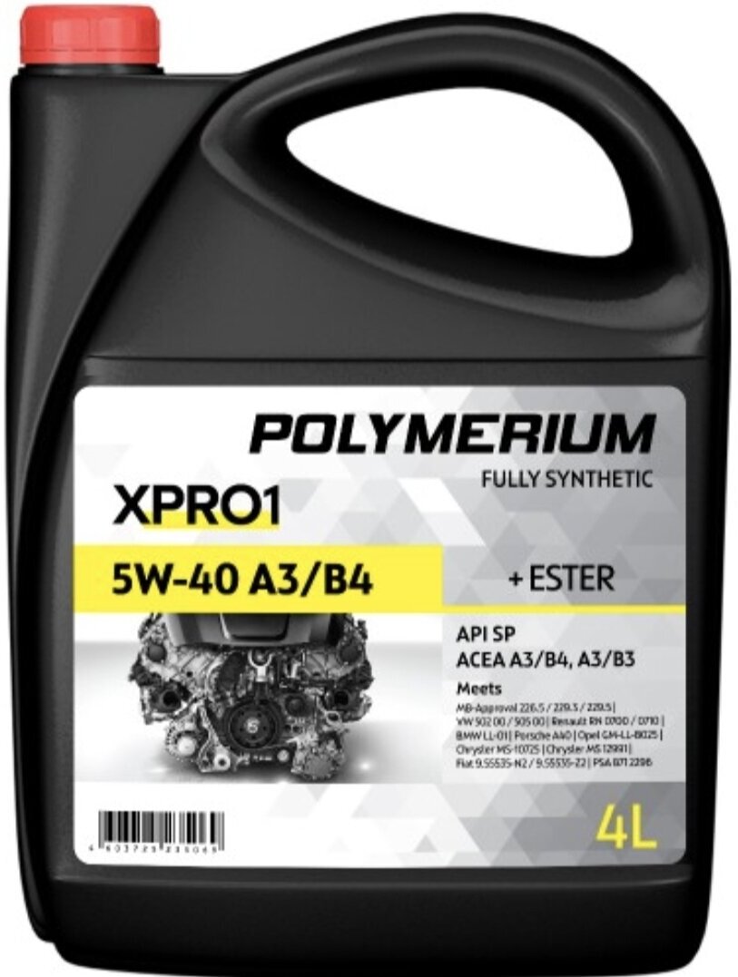 SAE viscosity grade: 5W-40, oil type: synthetic, vehicle type: passenger cars, fuel type: gasoline, diesel, methane, Gas, Hybrid, API standard: CF, SN, SP, ACEA standard: A3/B4, A3/ B3, A3, B3, B4, OEM approvals: BMW Longlife-01, Chrysler MS 12991, FIAT 9