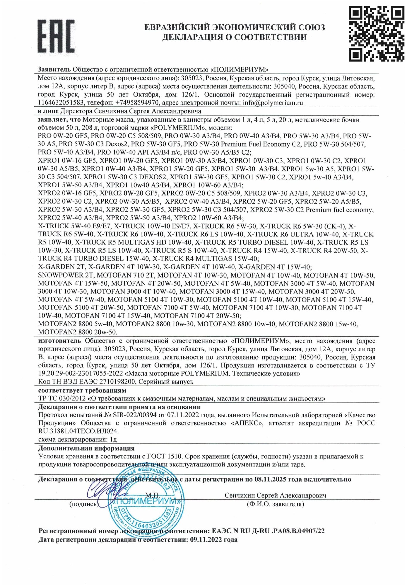 Synthetic POLYMERIUM XPRO1 SAE 5W-40 A3/B4/ 1 liter / all season