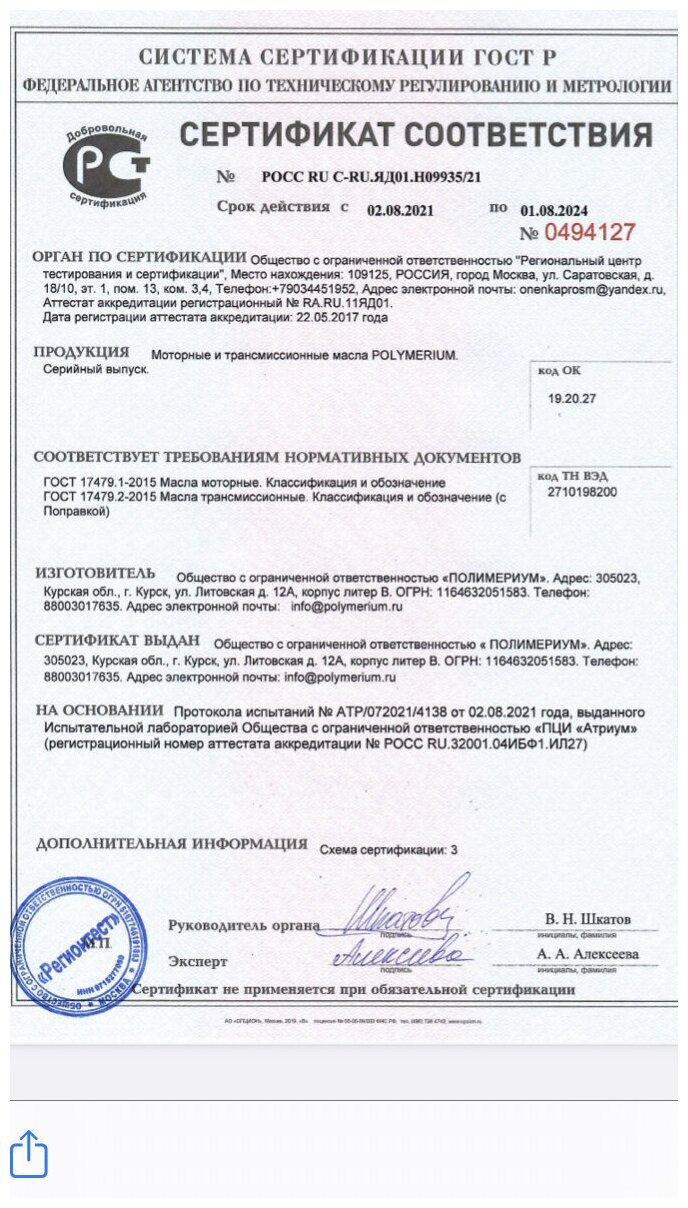 POLYMERIUM XPRO1 5W-50 Synthetic