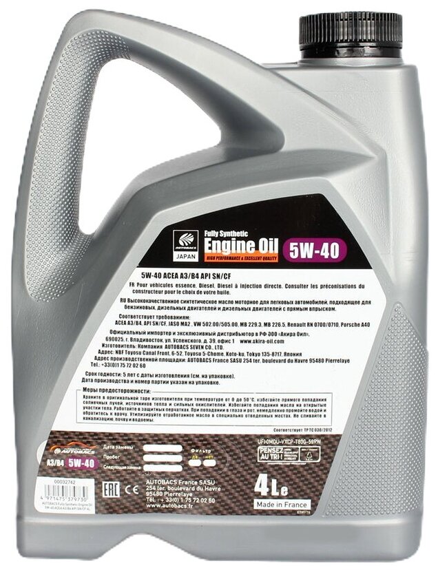 Autobacs 5W40 4 l. A3/B4 API SN/CF