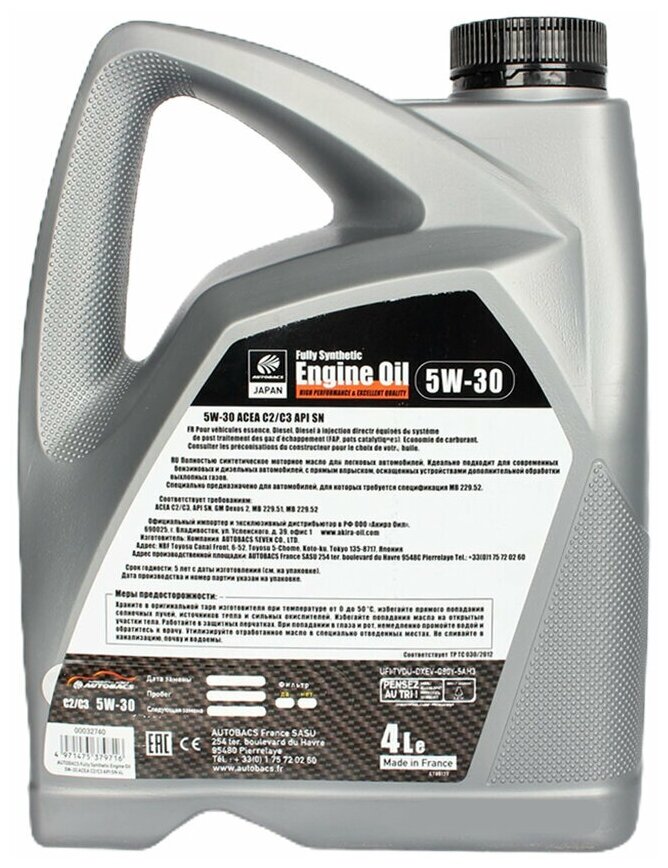 Autobacs Fully Synthetic 5W30 ACEA C2/C3 API SN 4L Synthetic
