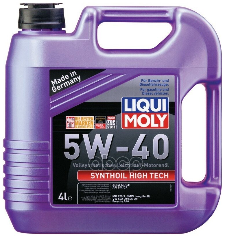 SAE viscosity grade: 5W-40, oil type: synthetic, vehicle type: passenger cars, API standard: CF, SN, ACEA standard: A3/B4, engine type: four-stroke, for turbocharged engines