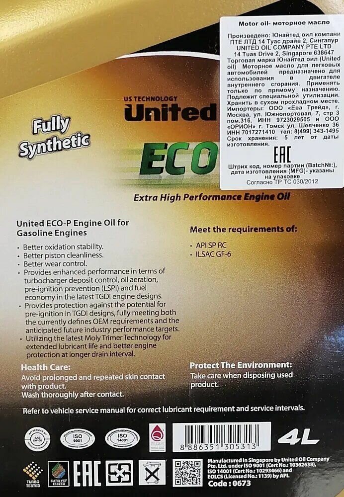SAE viscosity grade: 5W-30, oil type: synthetic, vehicle type: passenger cars, fuel type: gasoline, API standard: SN, SP, engine type: four-stroke, for turbocharged engines