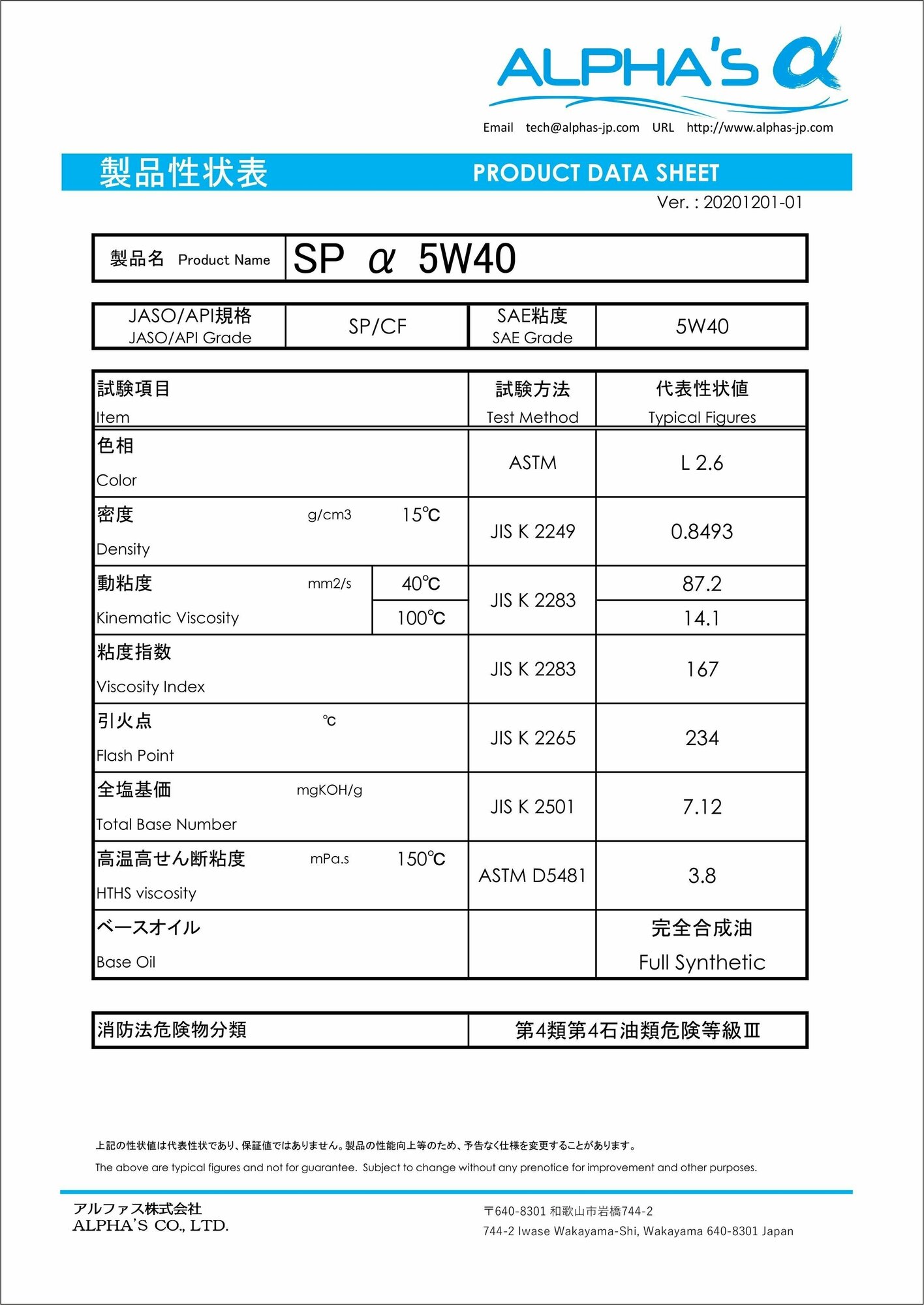 Viscosity grade SAE: 5W-40